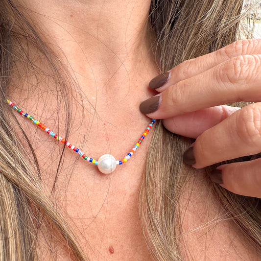 Skittles Beaded One Pearl Necklace