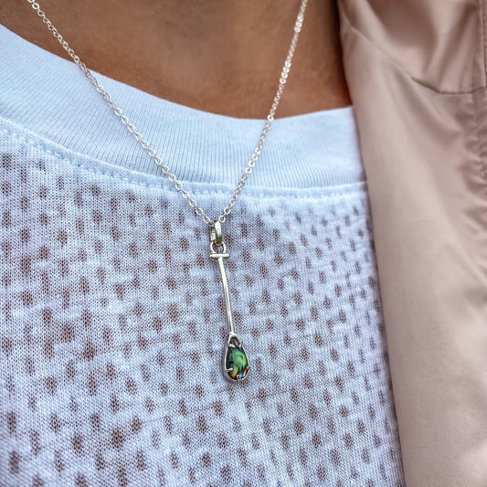 Sterling Silver Outrigger Canoe Paddle Necklace in Abalone