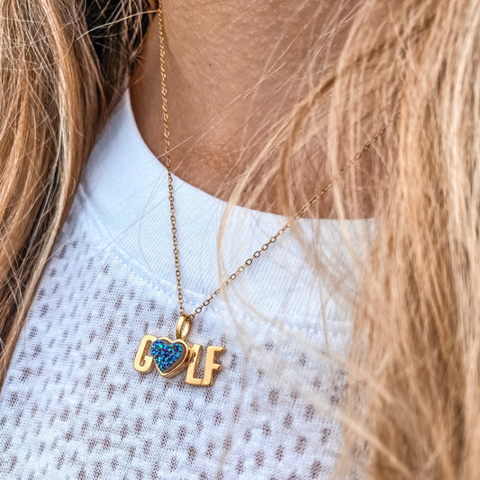Golf Gold Pendant Necklace in Druzy