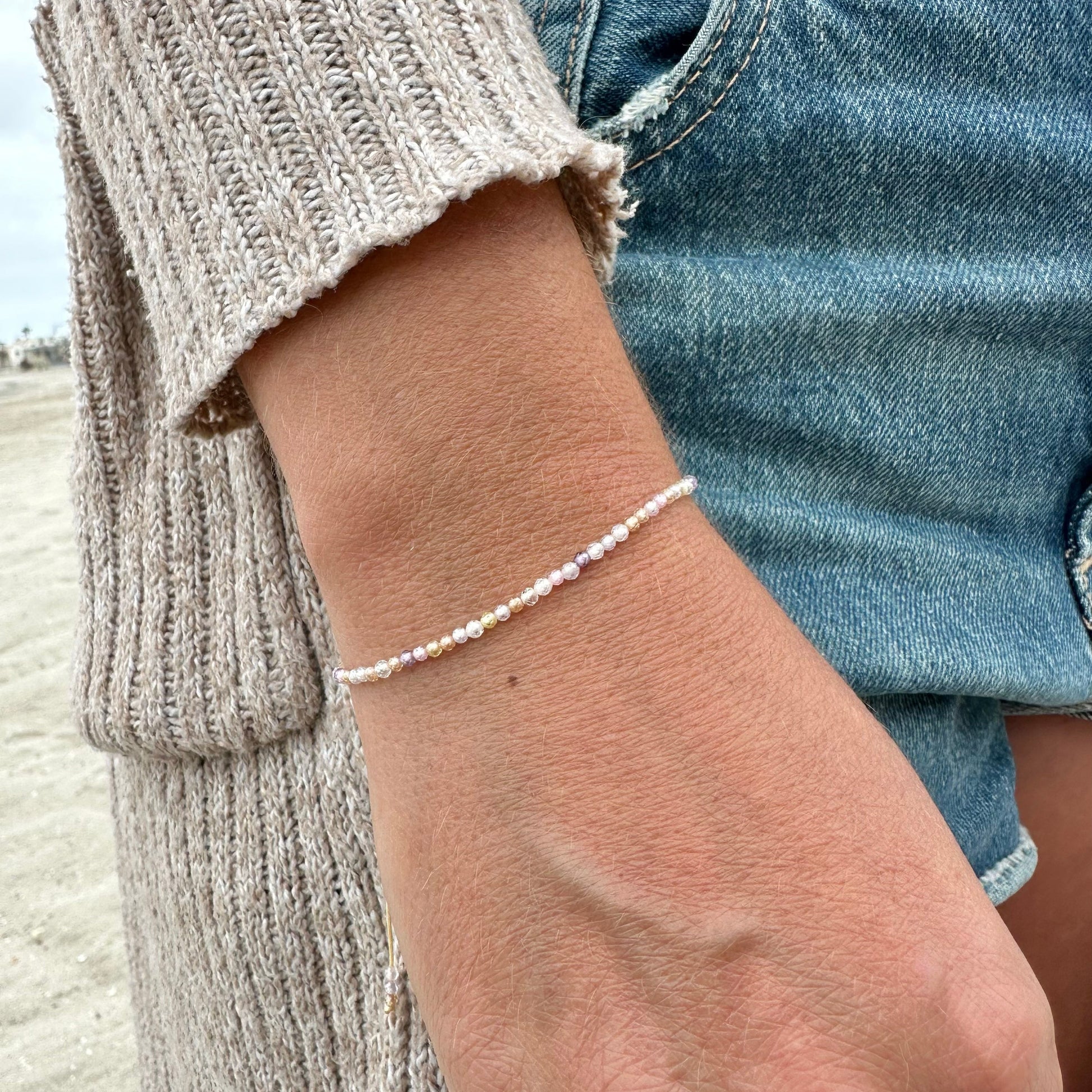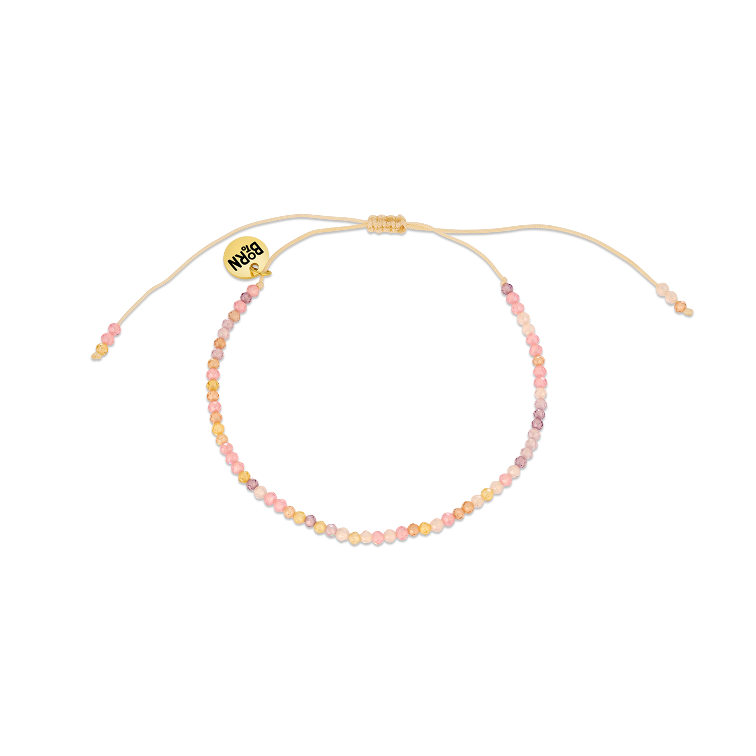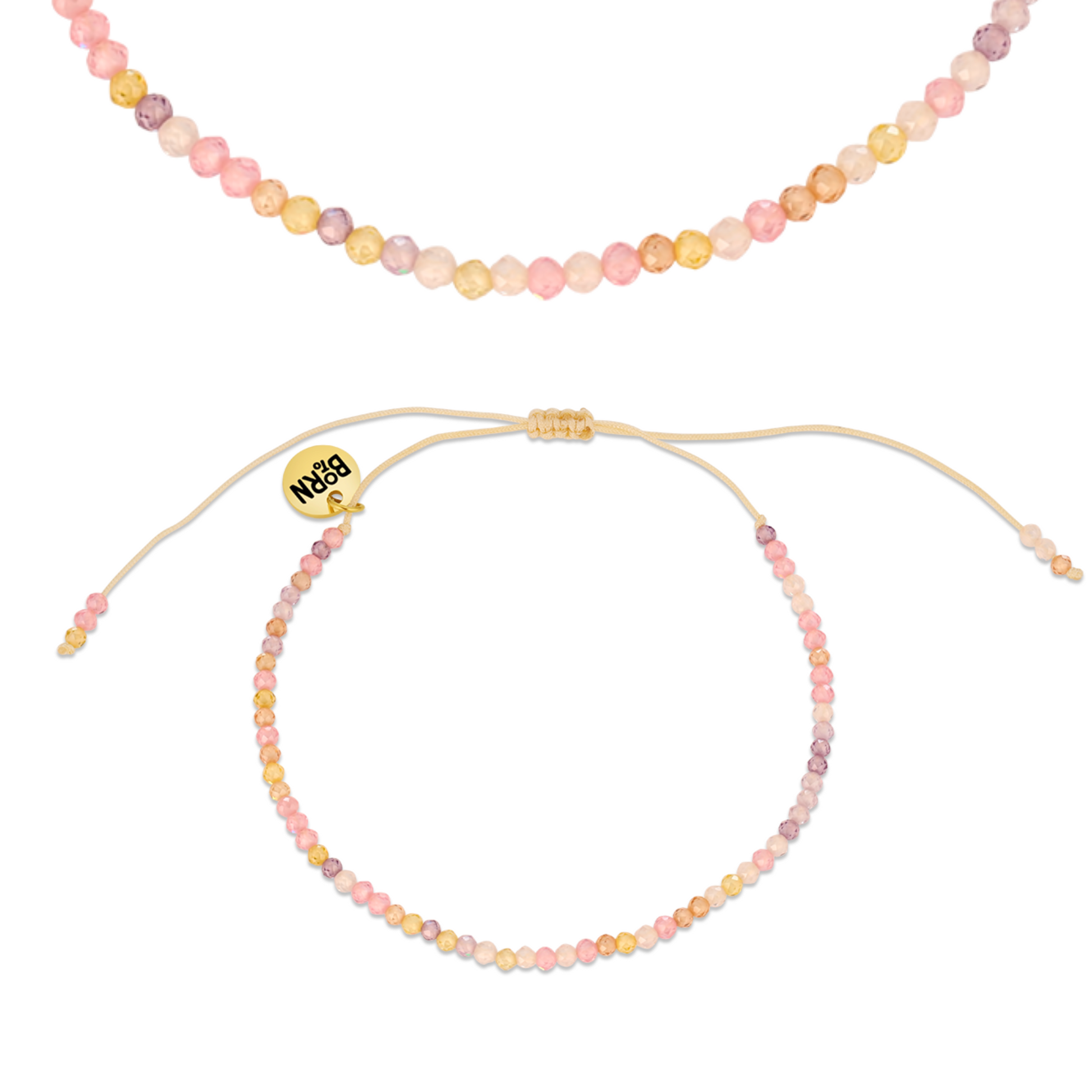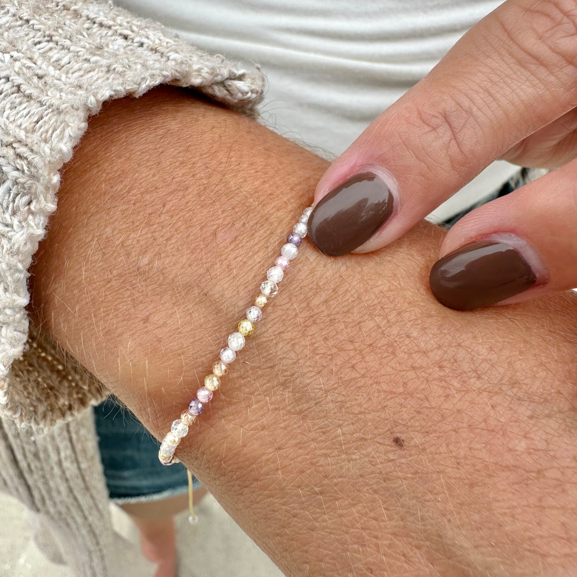 The Blush Bracelet features a delicate blend of pastel crystals — soft pinks, lilacs, and warm yellows — hand-strung on an adjustable cord for a perfect fit. Inspired by the gentle glow of rosé and the carefree spirit of summer, this bracelet brings a subtle sparkle to everyday moments.