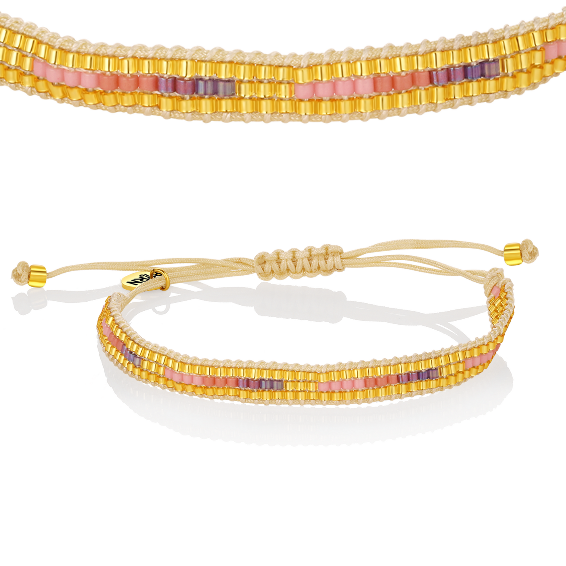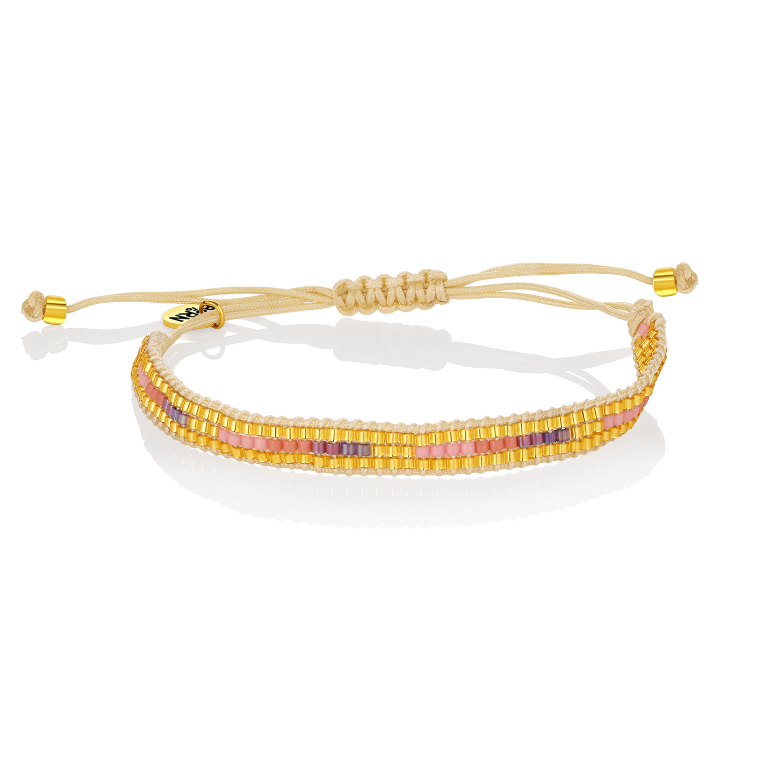 - Keywords: Woven bracelet, pink bracelet, golden hour jewelry, beaded bracelet, adjustable string bracelet