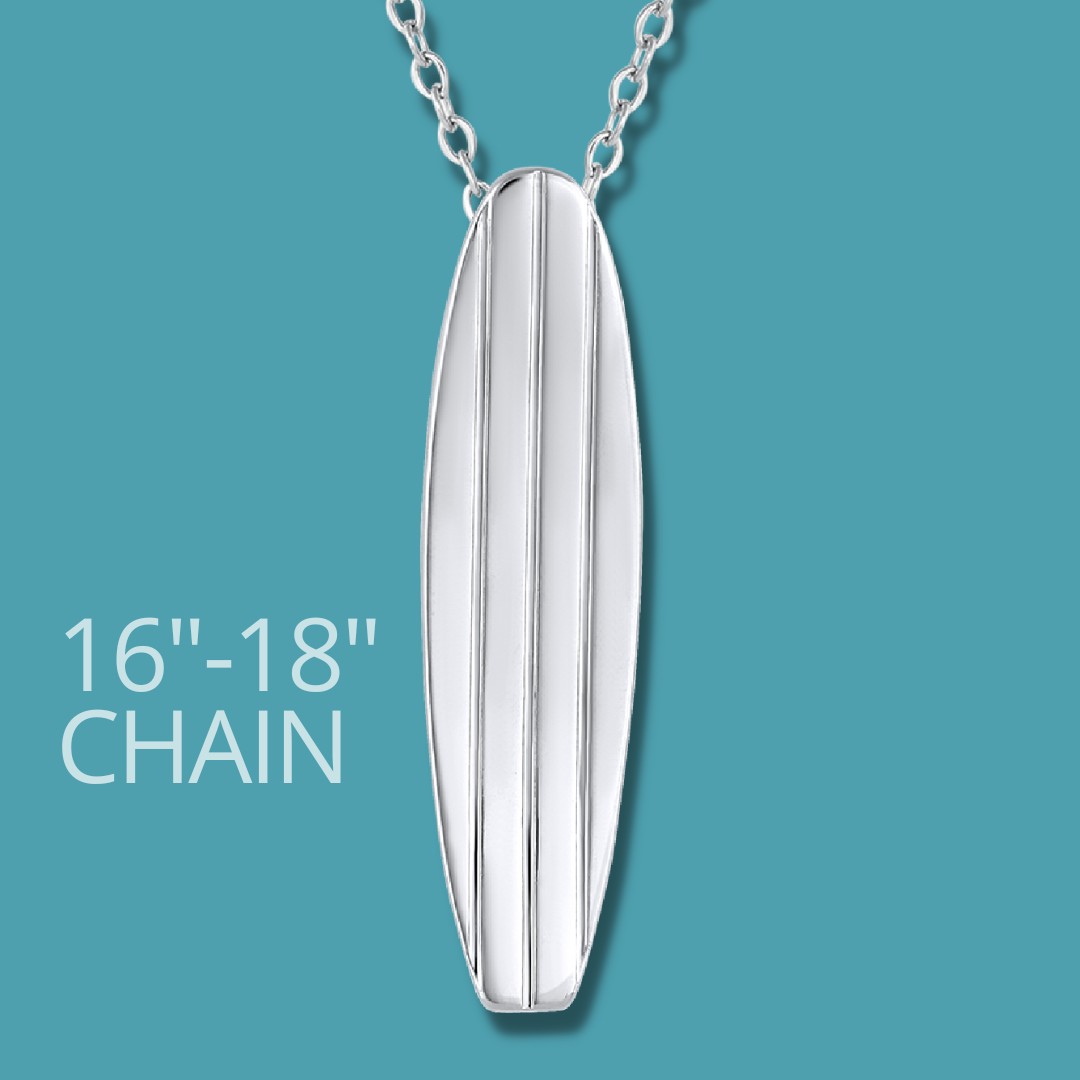 Longboard Surfboard Charm Necklace - 16"-18" Chain