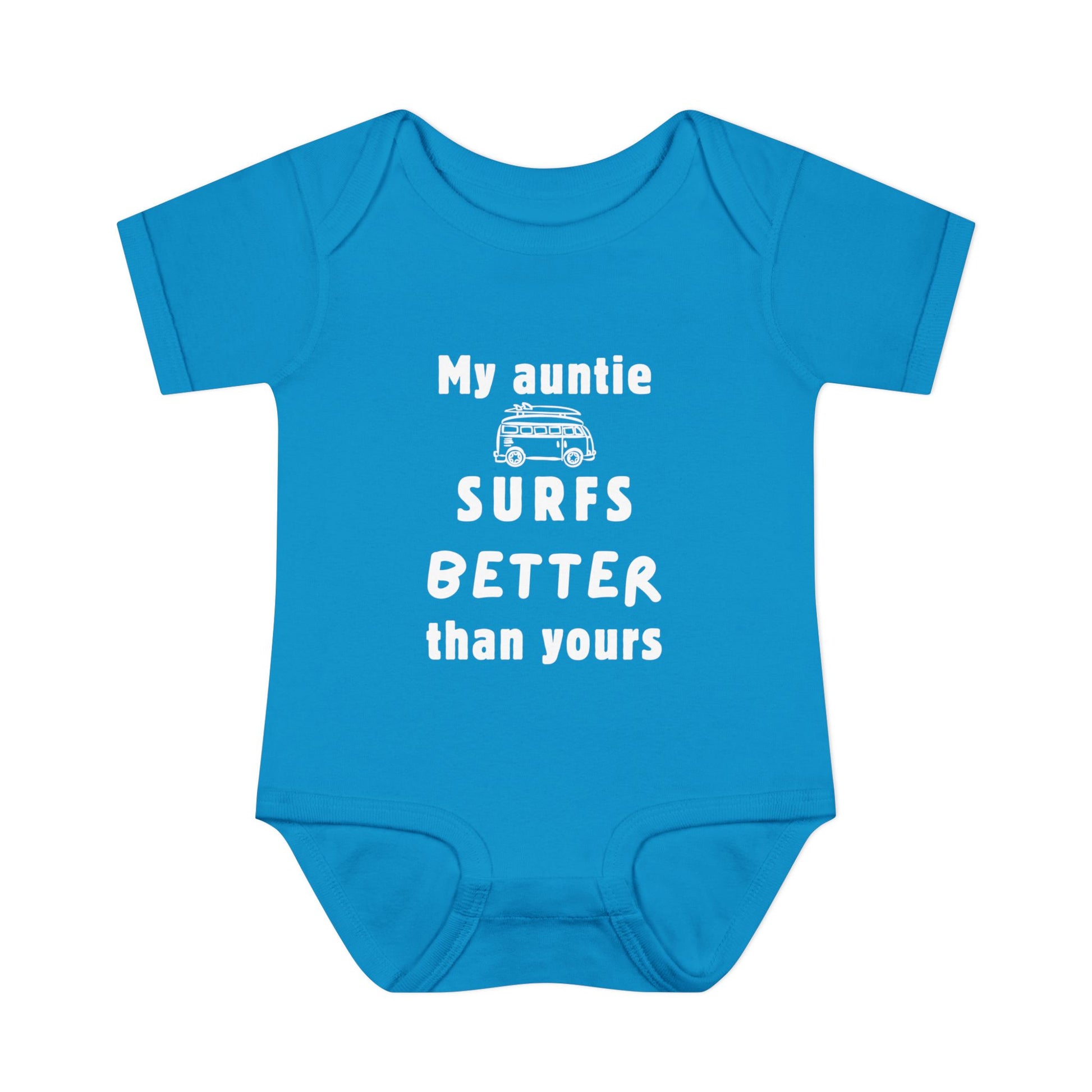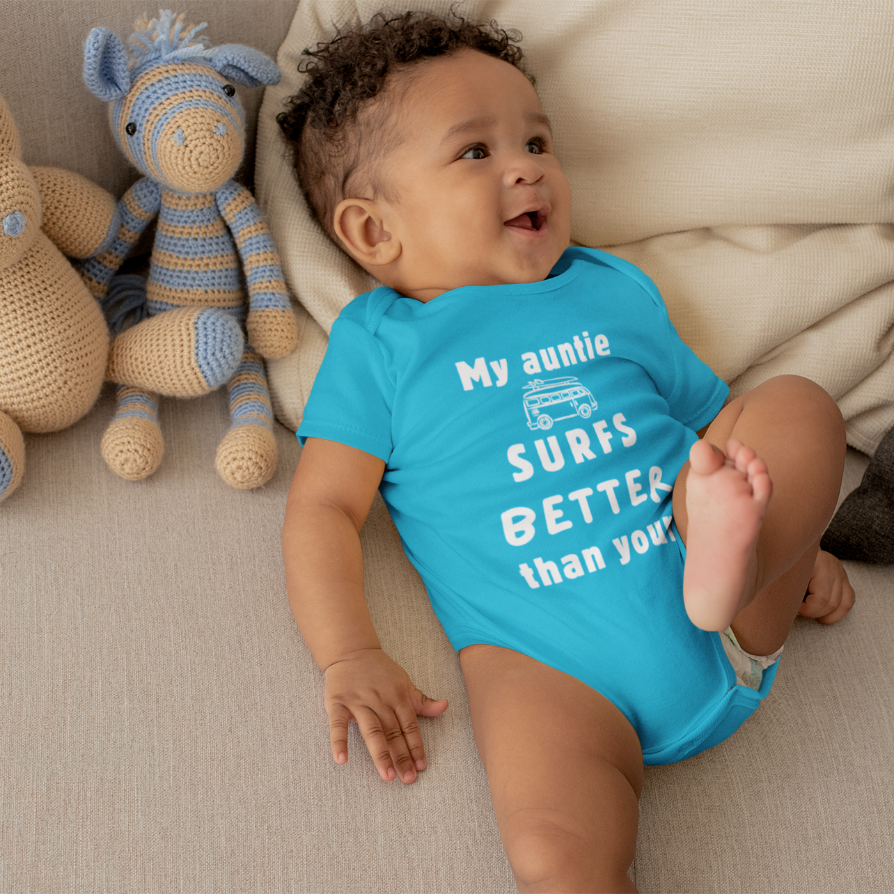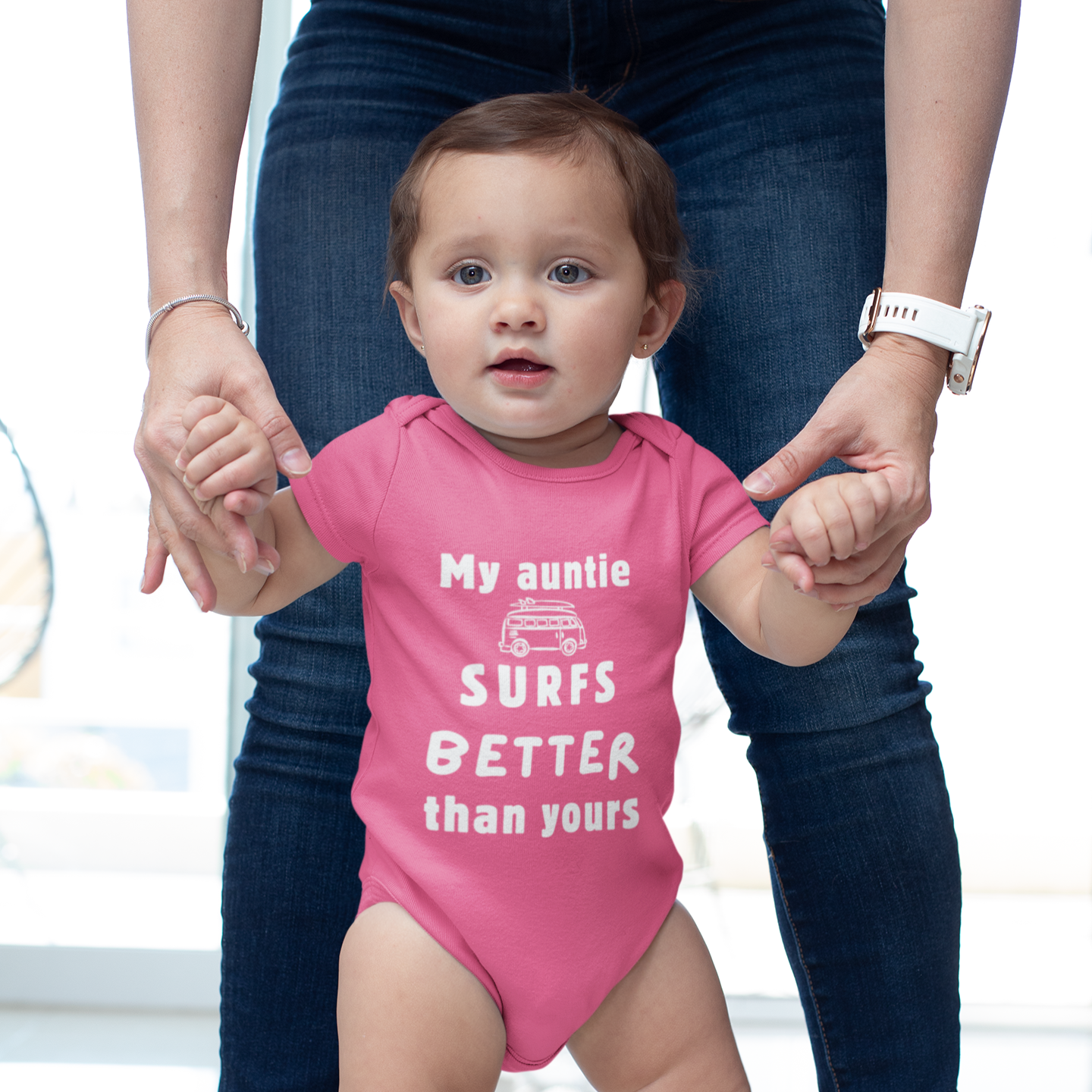 My Auntie Surfs Better Than Yours – Baby Bodysuit (Pink or Blue)