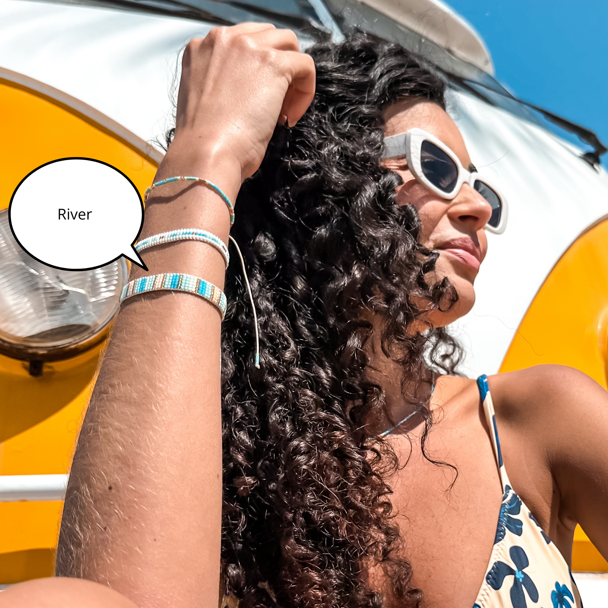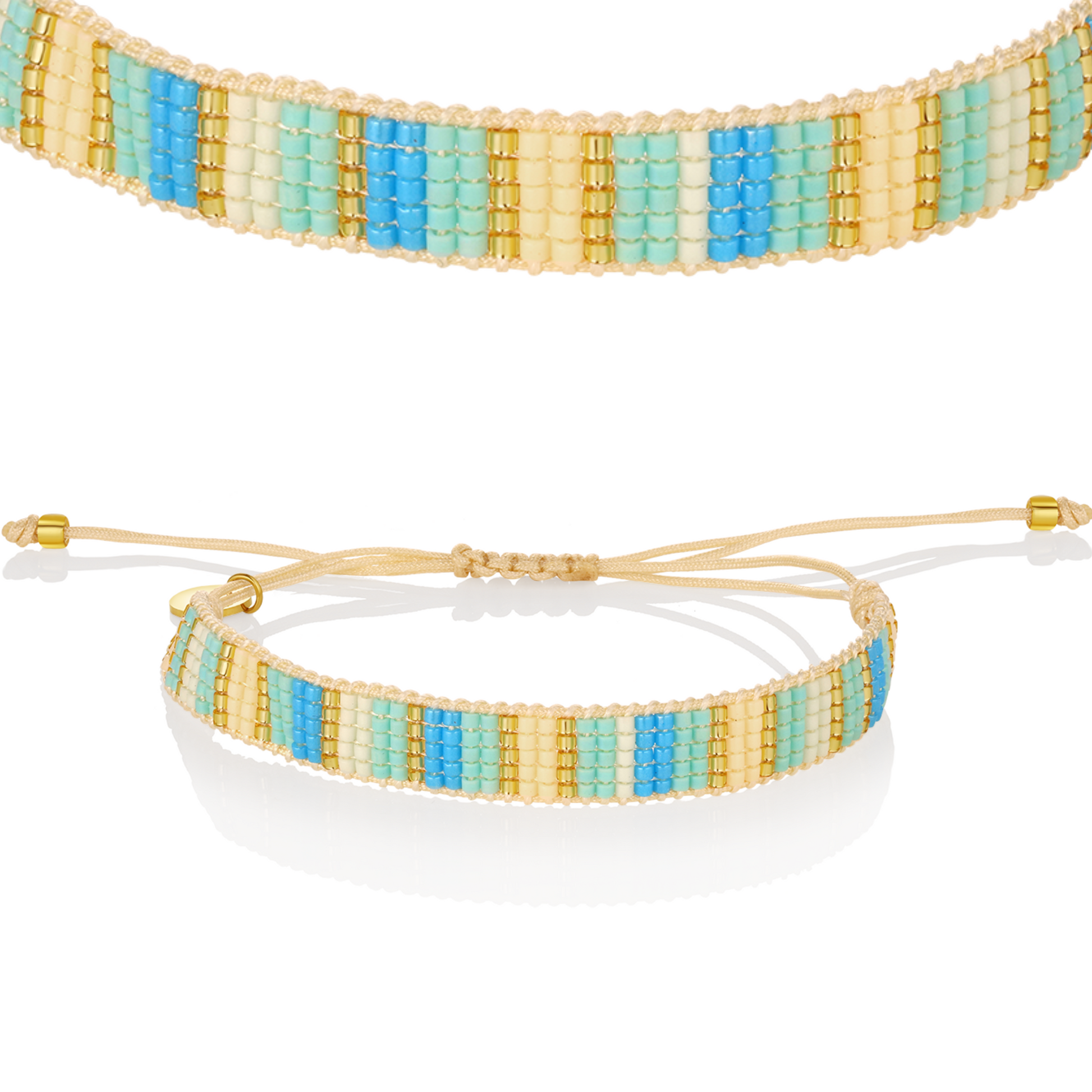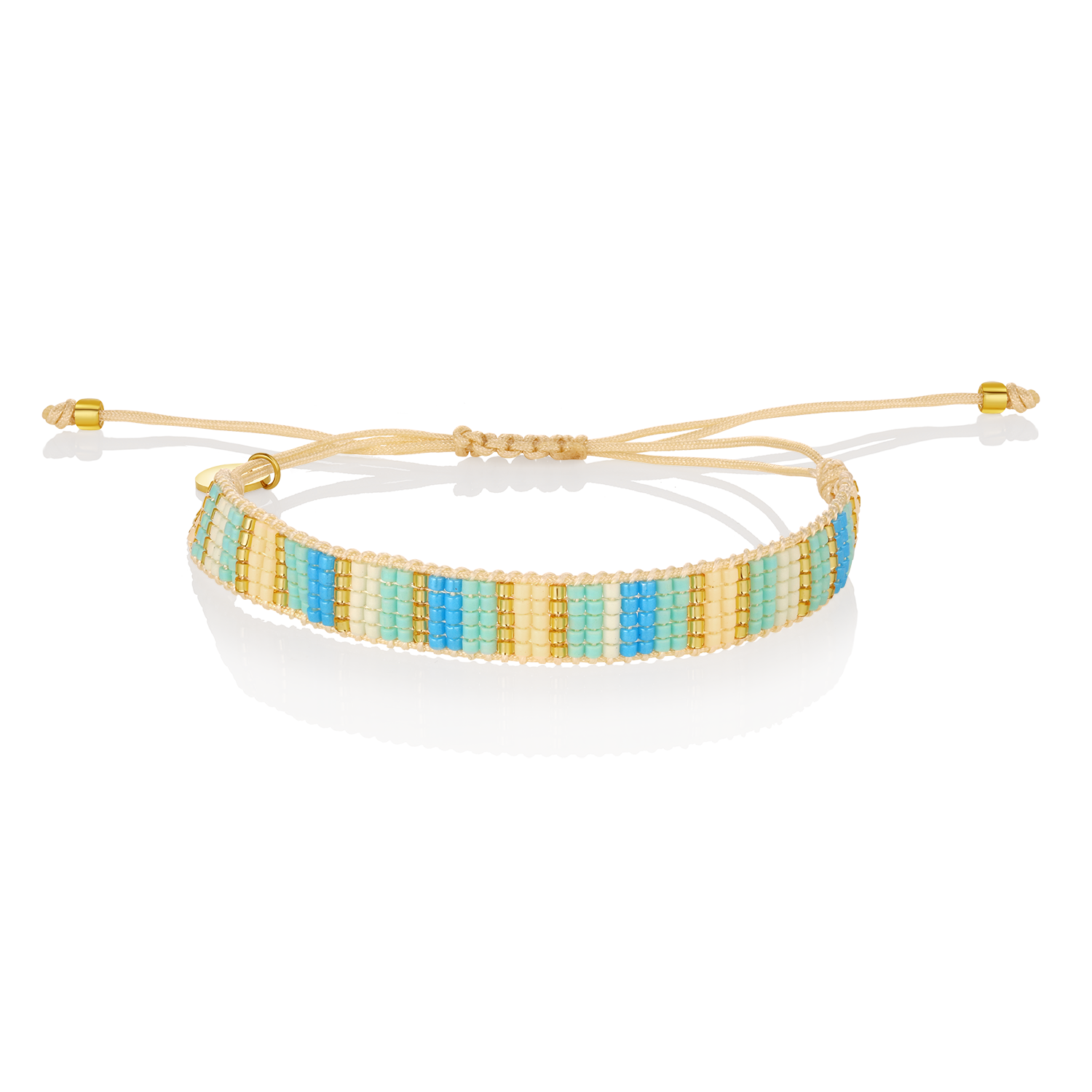 The River Bracelet captures the soothing rhythm of moving water with soft blue, white, and golden-toned beads in a sleek woven design. Like the gentle current of a peaceful stream, this bracelet adds a calm yet radiant touch to your everyday style. Lightweight and adjustable, it’s made for flow—on the beach, in the city, or wherever the day takes you.