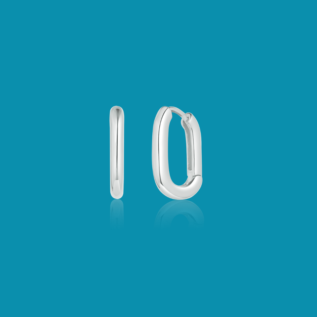Silver Small Oval Shaped Hoop Earrings