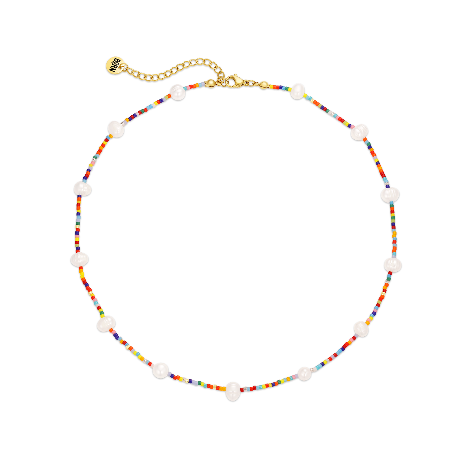 Let the party begin! The Skittles Fiesta is a colorful beaded necklace featuring multiple freshwater pearl beads spaced throughout a vibrant mix of mini seed beads. Bold, beachy, and full of personality—this necklace brings instant joy and good vibes wherever you go.